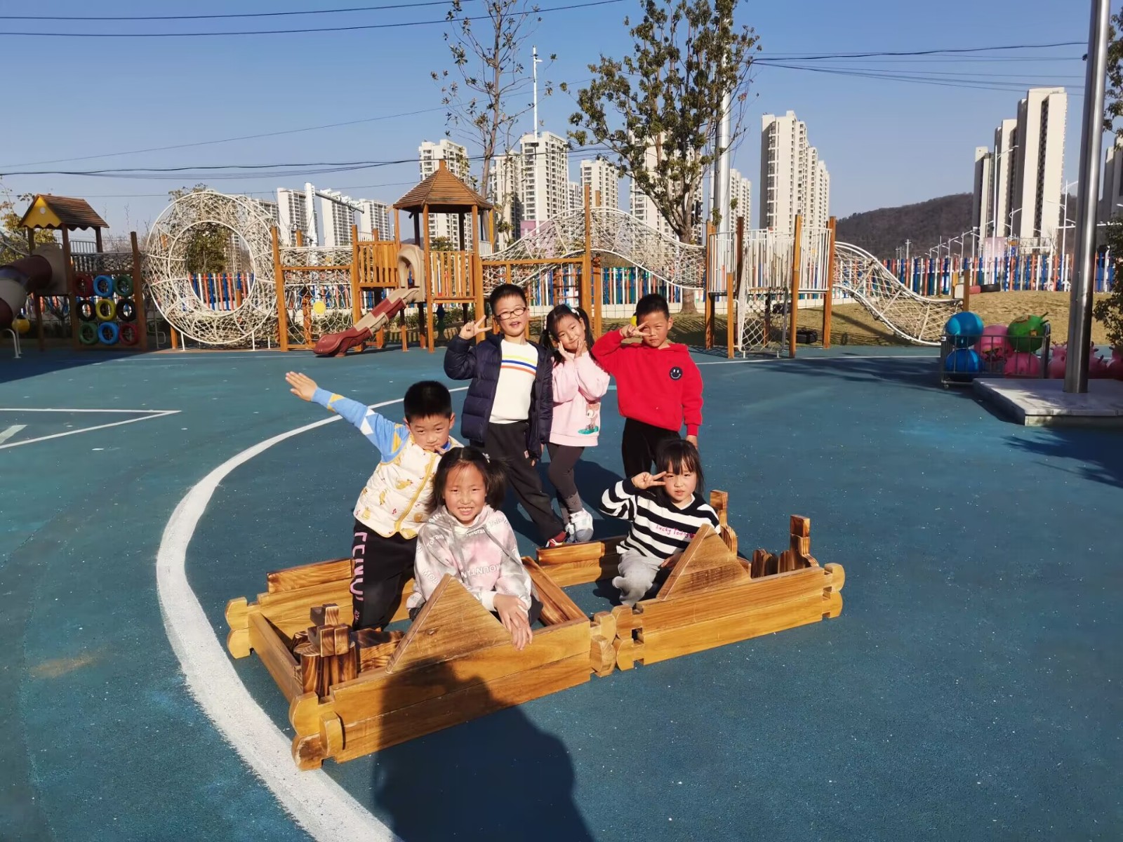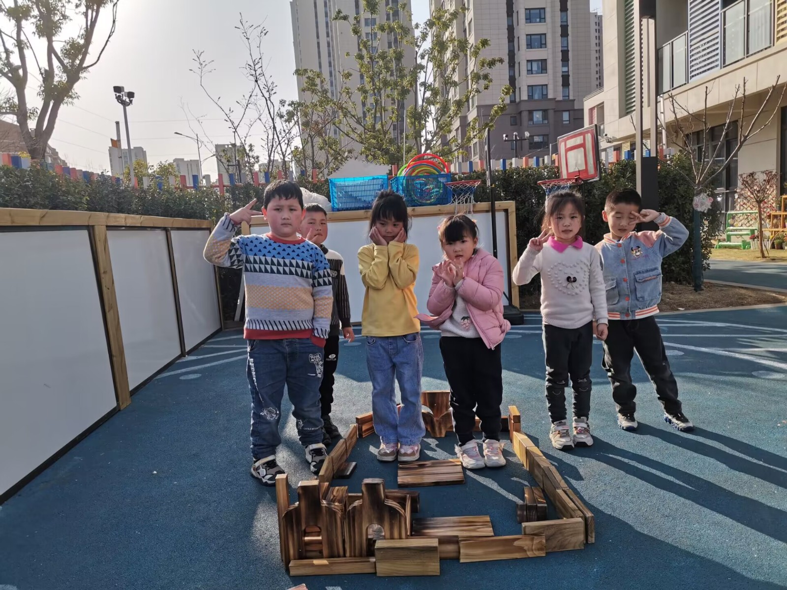 常言道:“爱玩的孩子健康,会玩的孩子聪明,常玩的孩子善于与人合作。”上午的一场雨并没有影响孩子们玩的热情,户外活动一开始,孩子们就七七八八的聚集到建构区开始自己的梦想小创造。